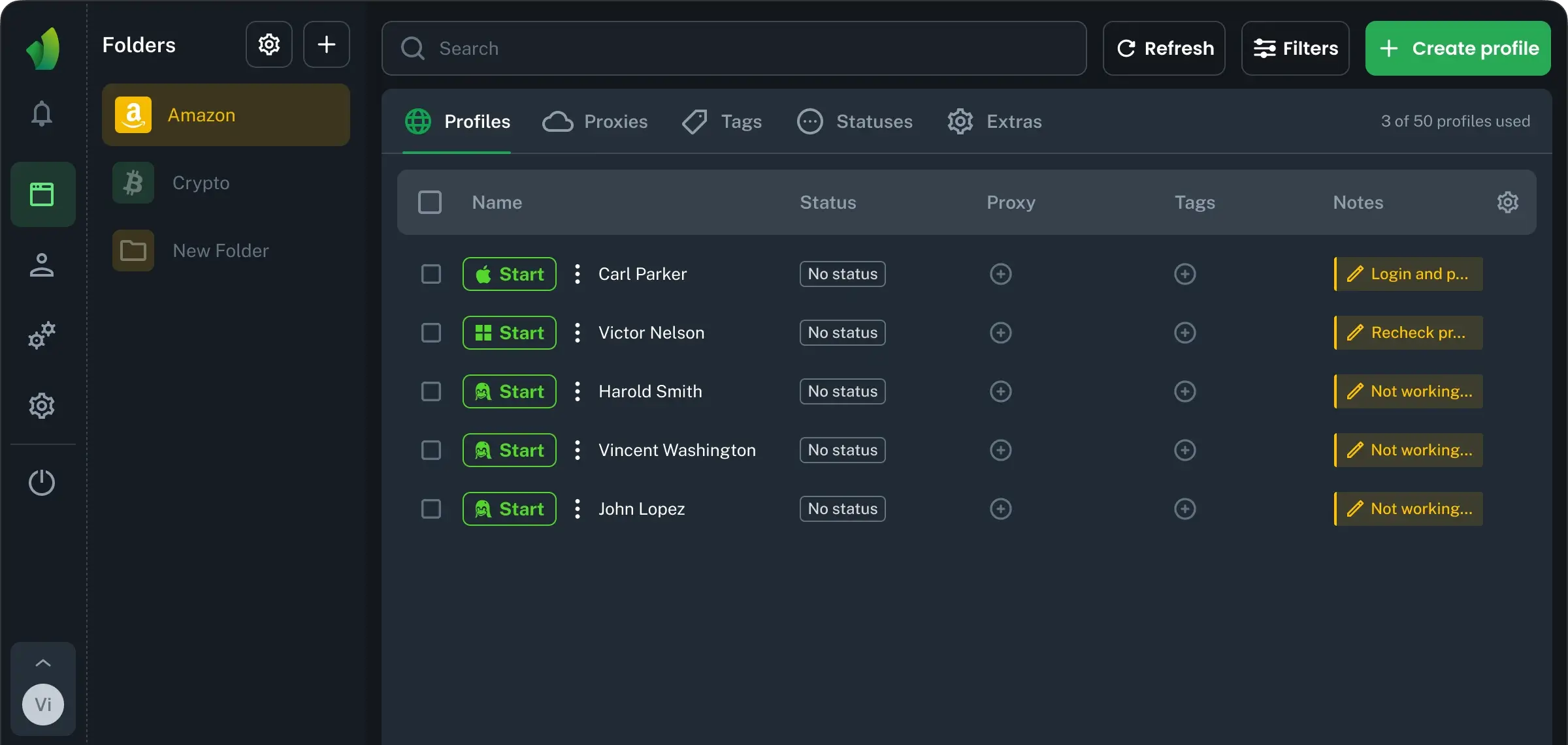 根据需要调整指纹或添加代理。享受完全控制和最高灵活性以完成任何任务。